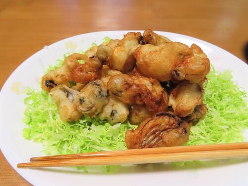 牡蠣のフリッターを肴に「鍋島 特別純米酒」をやる