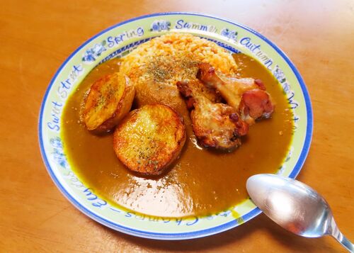 2022/11/27 本日の厨房男子。 夕餉に「鶏手羽元とじゃがいものカレーライス」を作った。 ごはんは「人参ごはん」。 カレーには玉ねぎ、人参、リンゴとハチミツが溶け込んでいる。鶏手羽元はフライパンで皮に焦げ目がつくまで焼いたあと、カレーを作る過程の…
