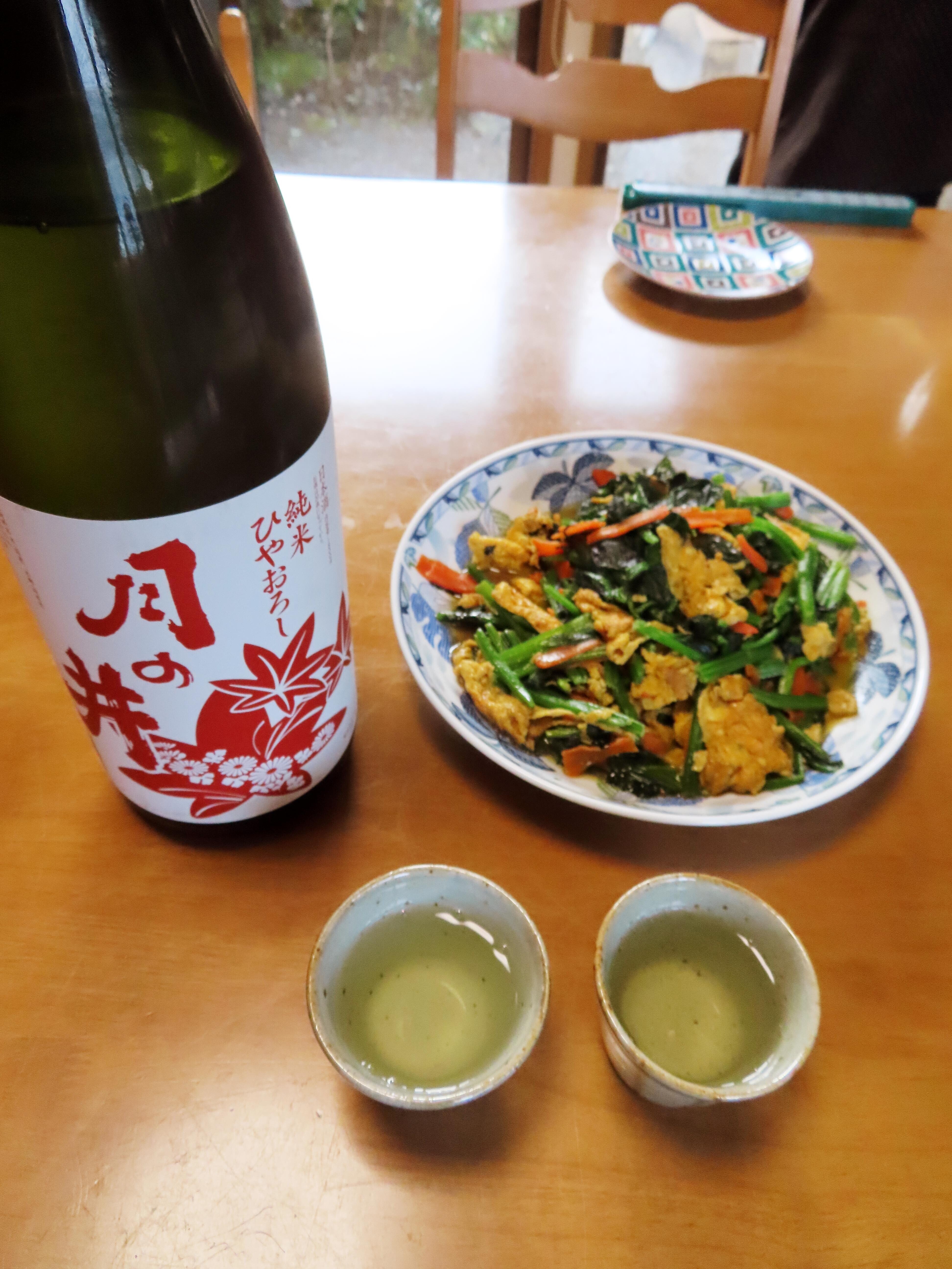 2023-03-04 月の井 純米ひやおろし 厨房男子 酒 2023/03/04 本日の一献は「月の井 純米ひやおろし」。新酒の時季にひやおろしとは、季節がずれてる気がしないこともない。しかし本来酒は新酒より熟成のすすんだひやおろしのほうがうまい。特に食中酒として飲むなら断然ひやおろしがうまい。 香りはおだやか。キリッと辛口だ。どちらかといえば淡麗な味わいだが、ほどよく旨味がのっている。酸も効いて切れが良い。こうした酒こそ食中酒としてふさわしい。 肴は「ほうれん草、人参、卵炒め」「焼き塩鯖」。酒は特に塩鯖に合う。