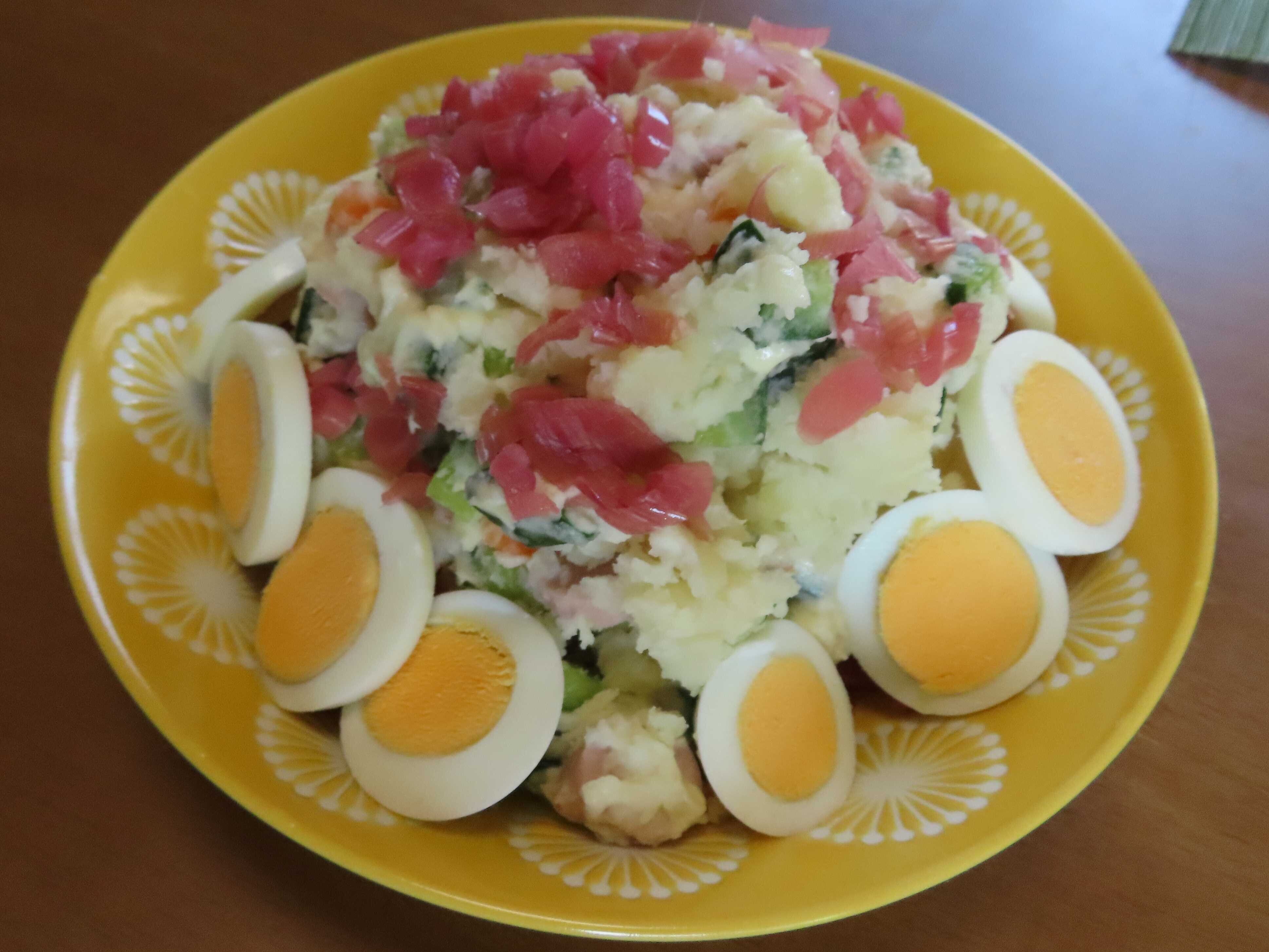 「ポテトサラダ」 熟成したじゃがいも、胡瓜、魚肉ソーセージ、ゆで卵、茗荷酢漬け。