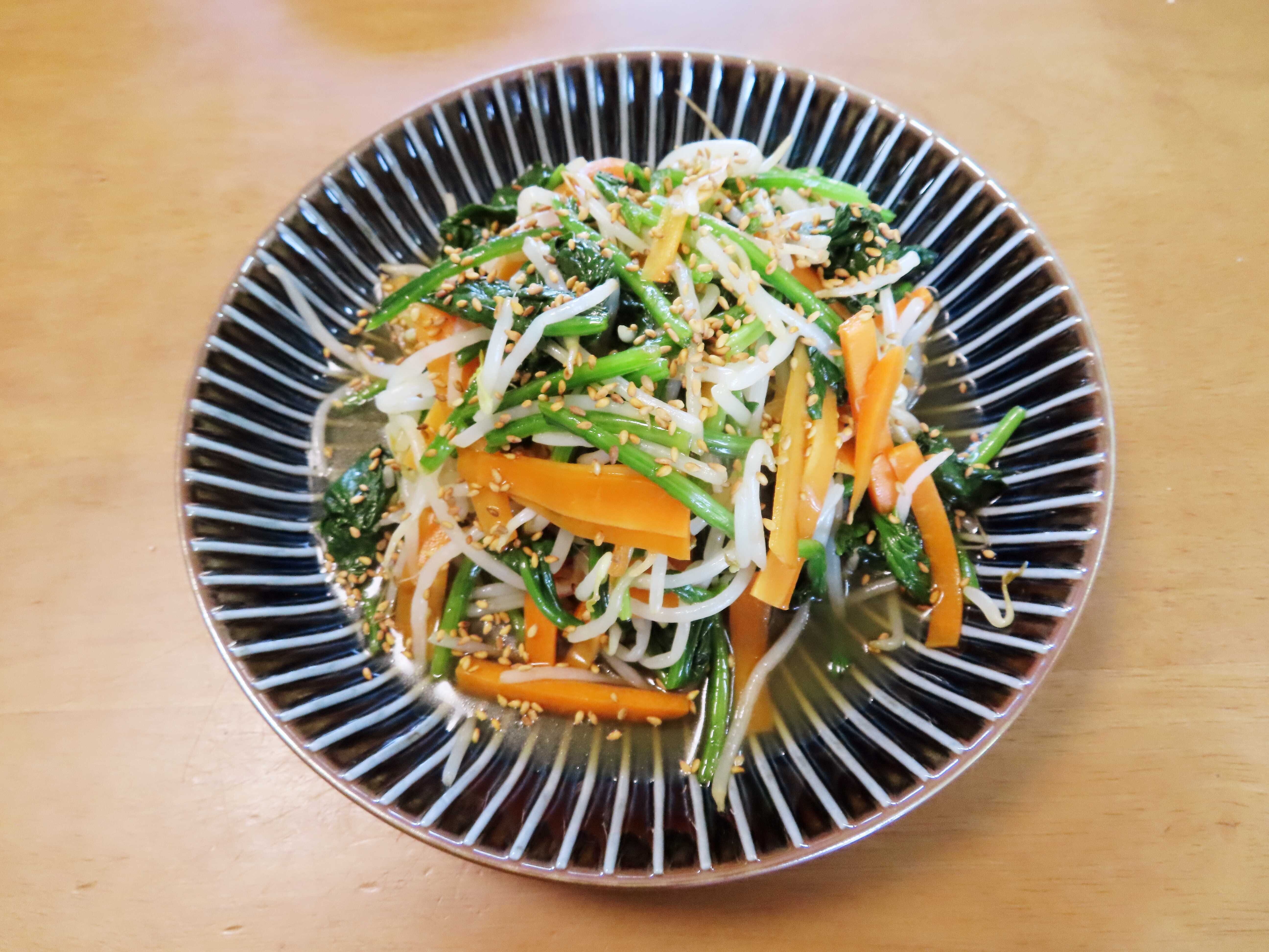 「ナムル」 ほうれん草、人参、もやし、ごま。