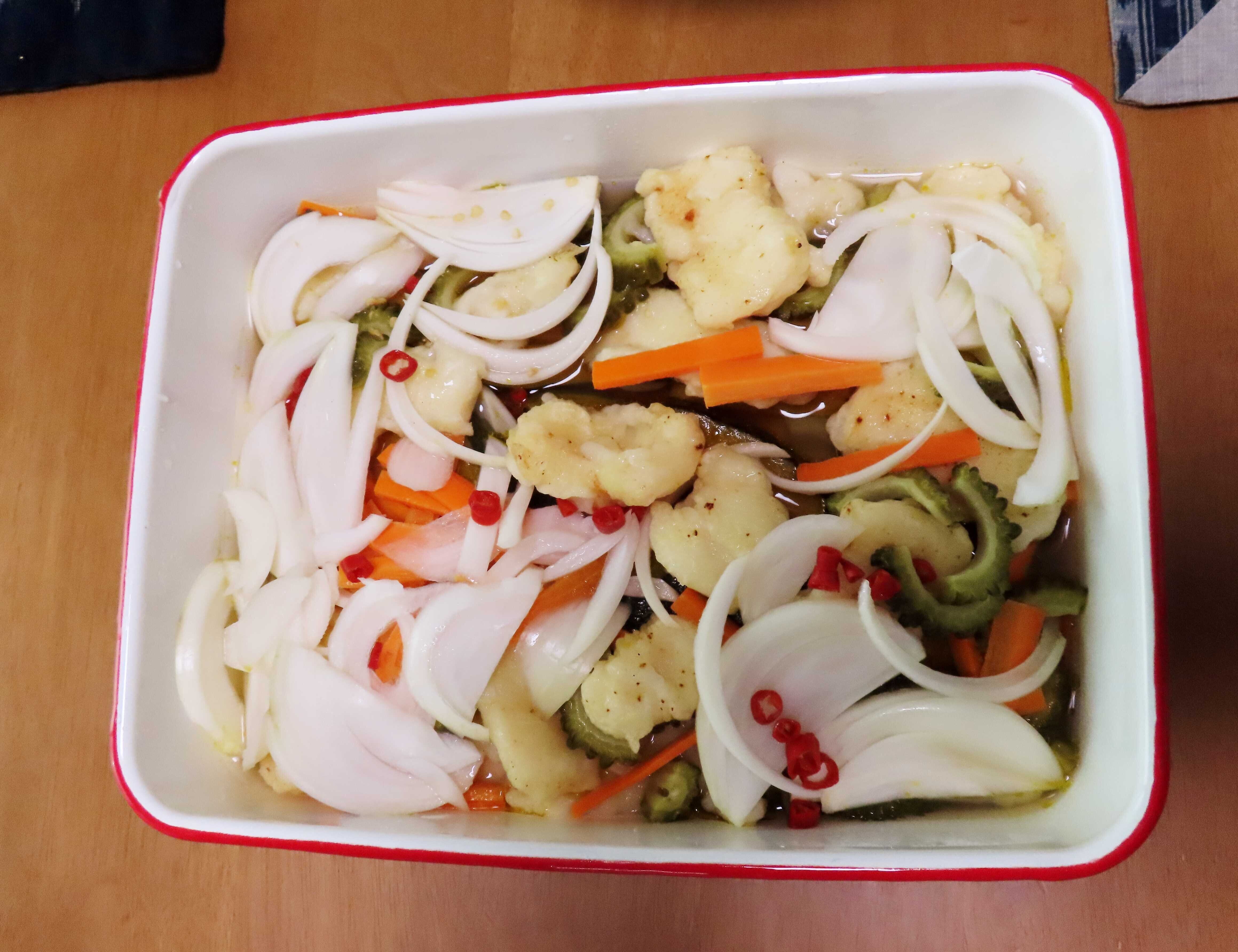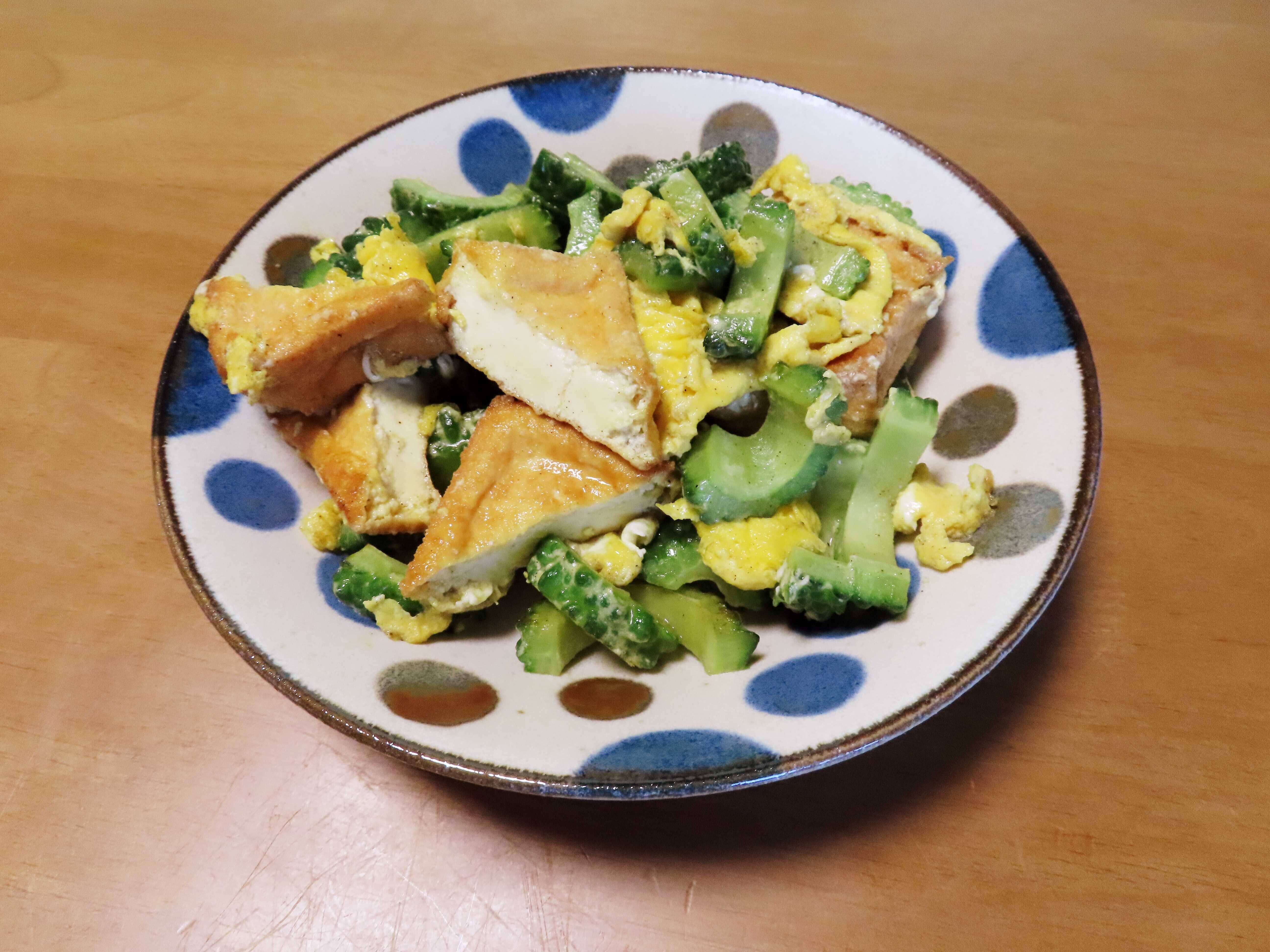 そんなこんなで、ここ三週間ばかりはひたすらゴーヤーチャンプルーを食べる毎日である。なくなりかけたと思ったら、また別の知人からいただくのだからありがたい。一日一食は必ずゴーヤーを食べる。もちろん二食の日もある。家にじっとしている日は一日二食しか食べないので、かなりの頻度である。それでもまったく文句はない。むしろ嬉しい。ここは沖縄かと思うほど嬉しい。昨日の夕食でも食べた。実は昨夜で残り一本を残すのみとなってしまった。あぁ、今年の夏も終わったのだなぁ、と冷蔵庫の中身で季節の移り変わりを感じてしまった。そこで過ぎゆく夏を記憶にとどめるべく、ここ最近食べたゴーヤーチャンプルーをここに載せておく。