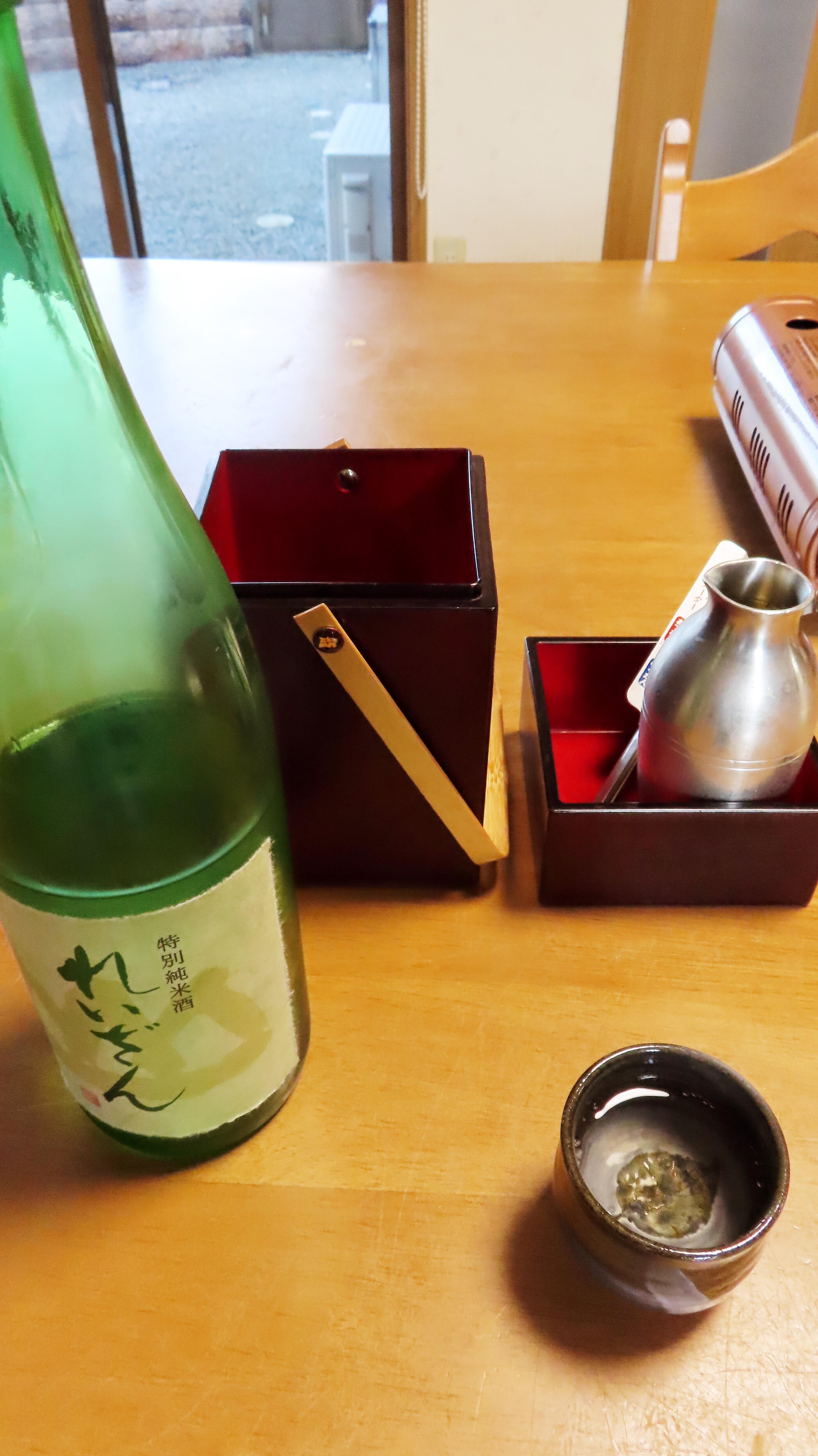 本を読みながら酒を飲むまったりとした午後を過ごすとあっという間に夕刻。酒を「れいざん 特別純米酒」の燗に変える。先月、阿蘇で買って来た酒だ。